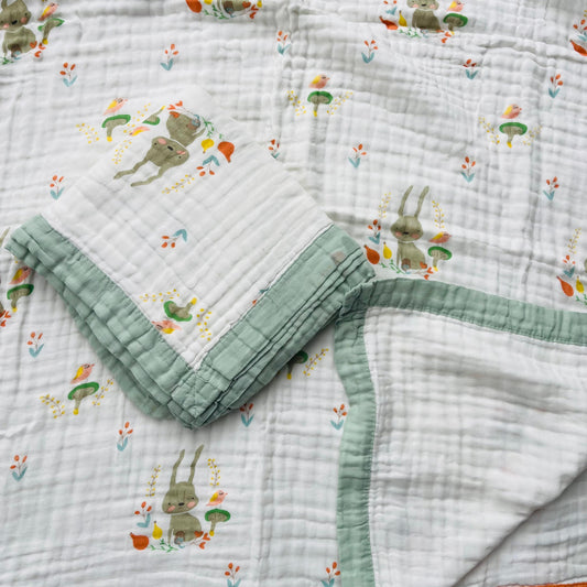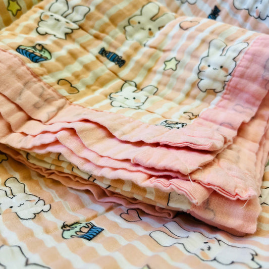 Baby Blanket | Organic Muslin Cotton - Multi-Layered | Little Bunny