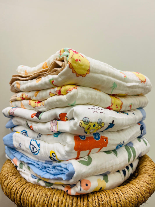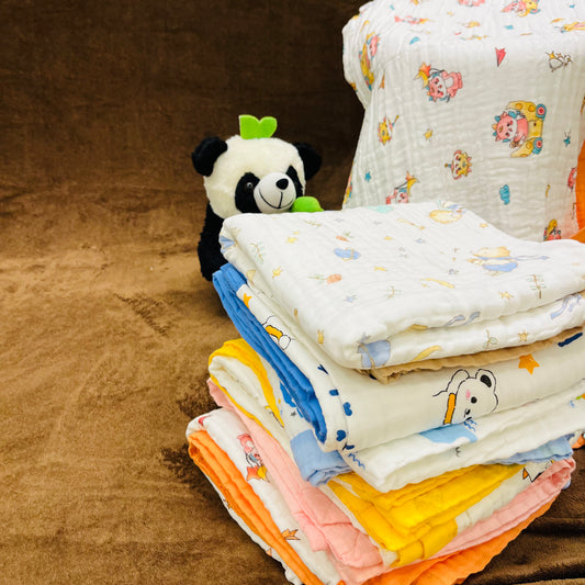 Baby Blanket | Organic Muslin Cotton - 6 -Layered | Office Bear