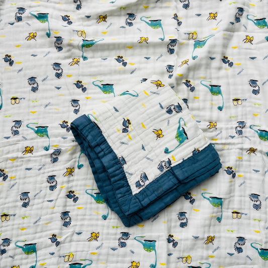 Baby Blanket | Organic Muslin Cotton - 6 -Layered | Dino Grey