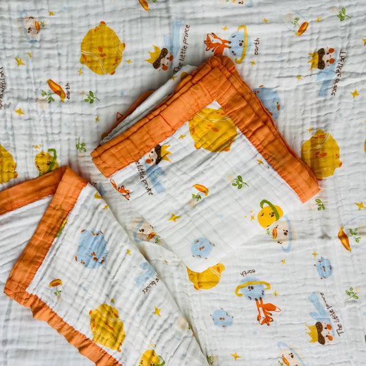Baby Blanket | Organic Muslin Cotton - 6 Layered | Orange Sun & Fox