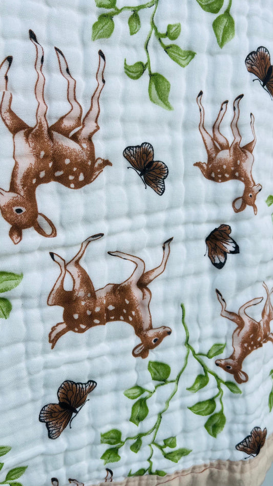 Baby Blanket | Organic Muslin Cotton - 6 -Layered | Deer Forest