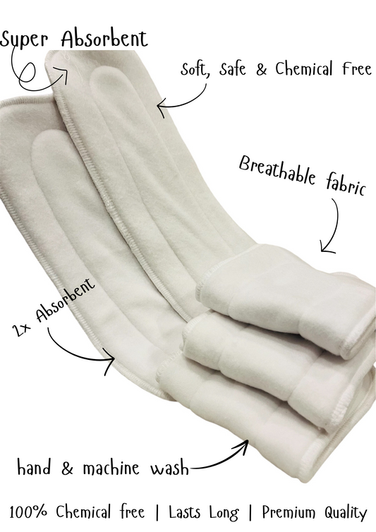 Experience the perfect blend of comfort, sustainability, and style with our cotton reusable diapers. Made from 100% natural, soft cotton, these diapers are gentle on your baby’s sensitive skin while being durable enough to withstand multiple washes.