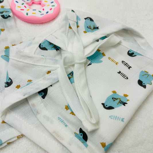 Pure Muslin Button Jabla & Padded Langot | 0-6 Months | Matching Set | Knot Padded Langot & Button Jabla | Penguins | Unisex
