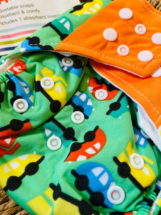 Reusable Diaper - Green Cars | Comes with 1 Reusable Pad | (0 Months to 36 Months)