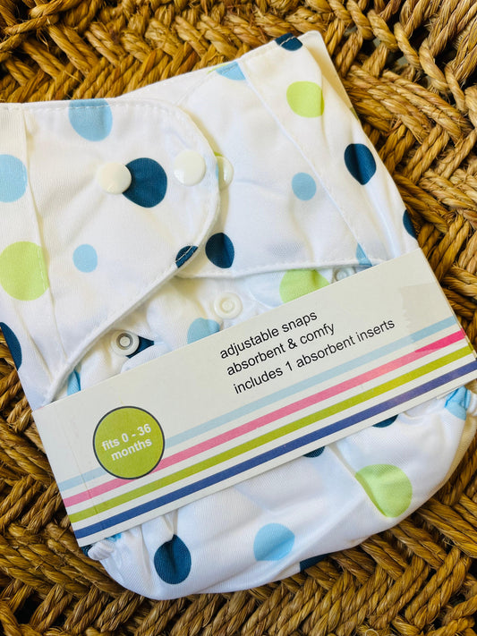 Reusable Diaper - White Polka Dots | Comes with 1 Reusable Pad | (0 Months to 36 Months)