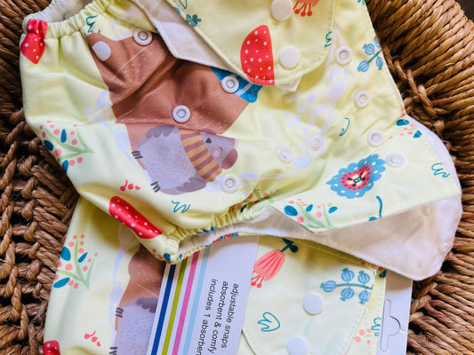 Reusable Diaper - Yellow Bear | Comes with 1 Reusable Pad | (0 Months to 36 Months)
