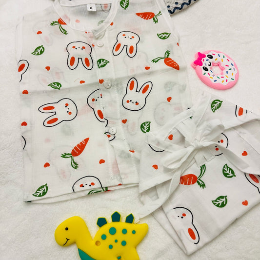 Pure Muslin Button Jabla & Padded Langot | 0-6 Months | Matching Set | Knot Padded Langot & Button Jabla | Miffy Carrots|Unisex