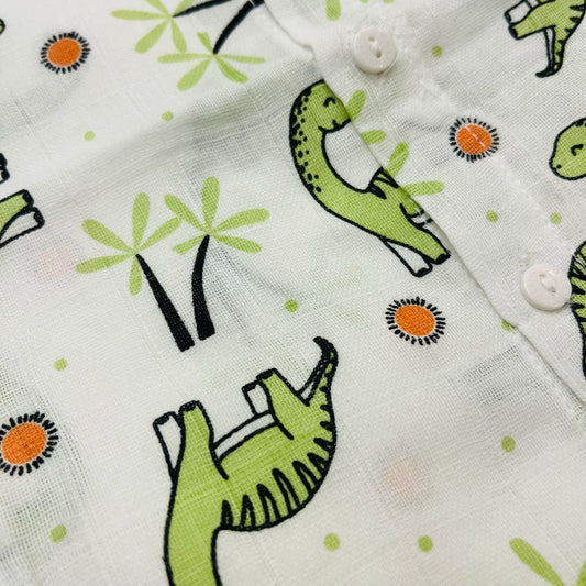 Pure Muslin Button Jabla & Padded Langot | 0-6 Months | Matching Set | Knot Padded Langot & Button Jabla | Little Dino | Unisex