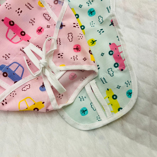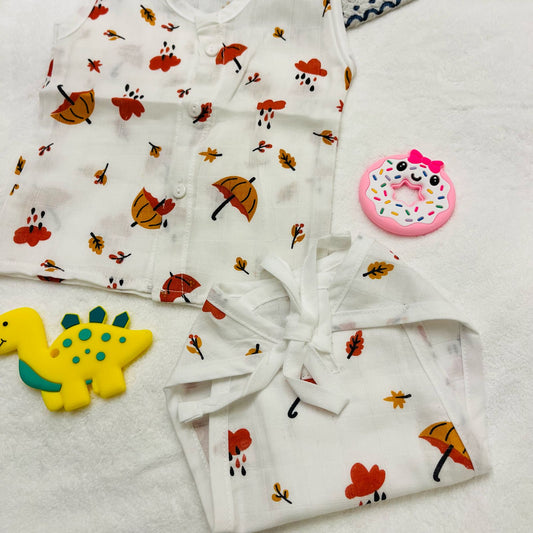 Pure Muslin Button Jabla & Padded Langot | 0-6 Months | Matching Set | Knot Padded Langot & Button Jabla | Umbrella Rain| Unisex