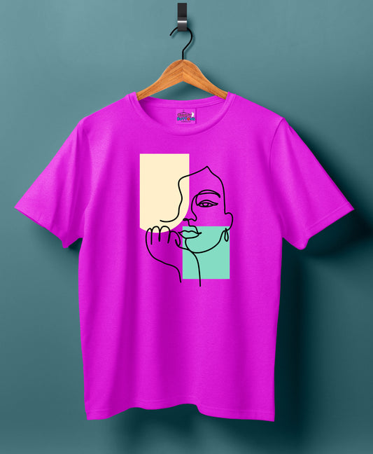 Women Cotton T-Shirt - Women Face outline