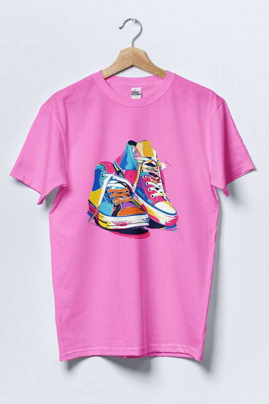 Women Cotton T-Shirt - Sneakers Colourful