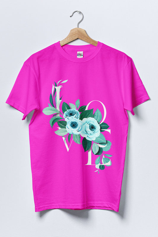 Women Cotton T-Shirt - LOVE Vintage Rose