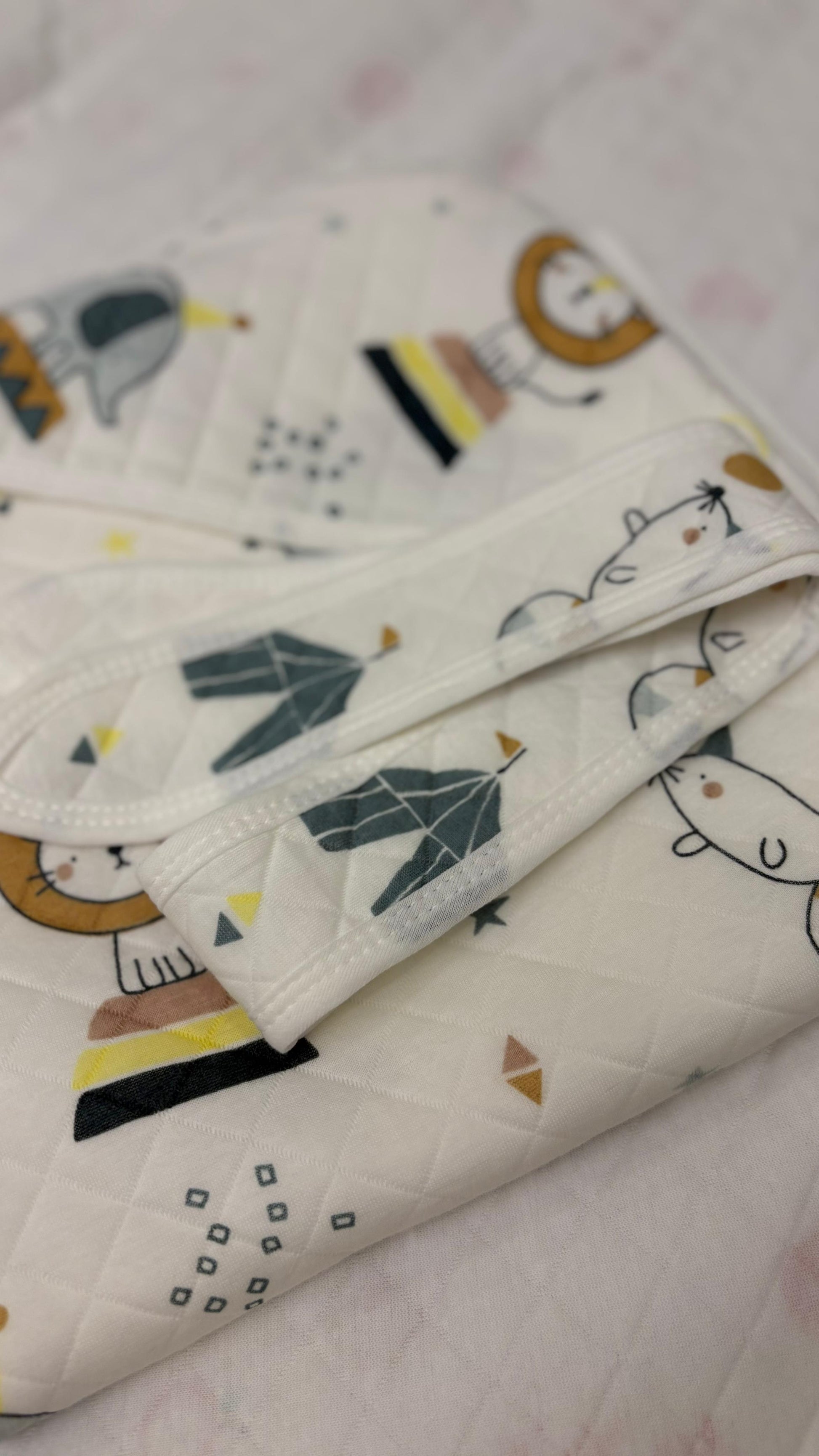 Eco - Muslin Cotton Hooded Blanket cum Towel | Animal Friends | (0 Months to 30 Months)