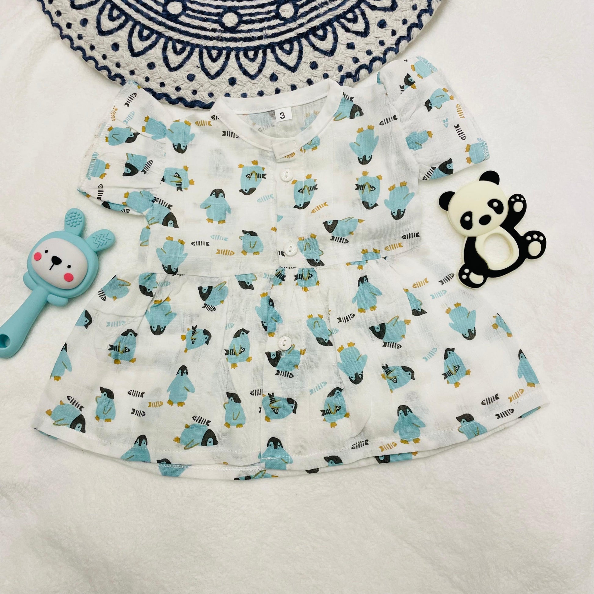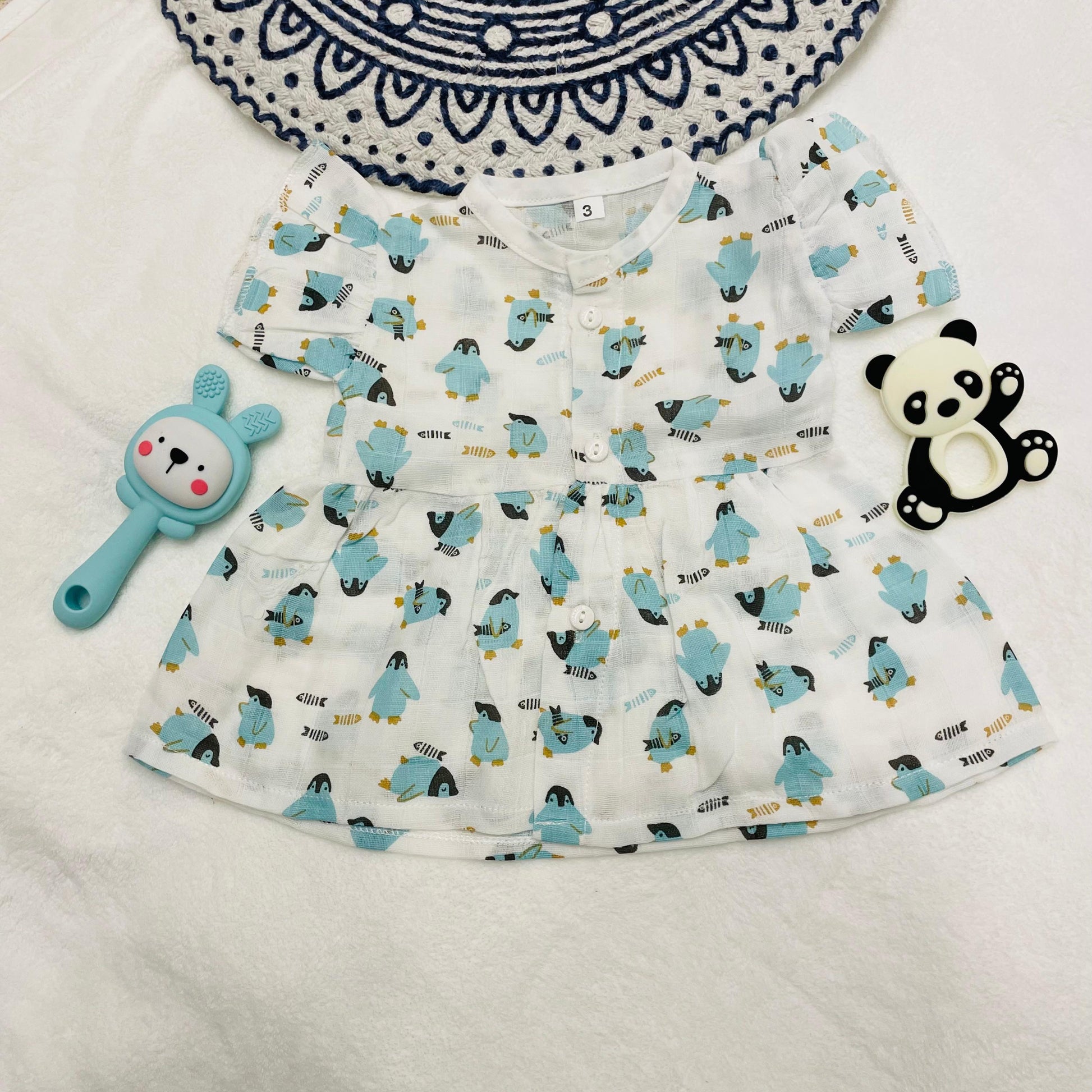 Frock | Pure Muslin | Button Type | 3 Months - 24 Months | Pure Muslin | Penguin