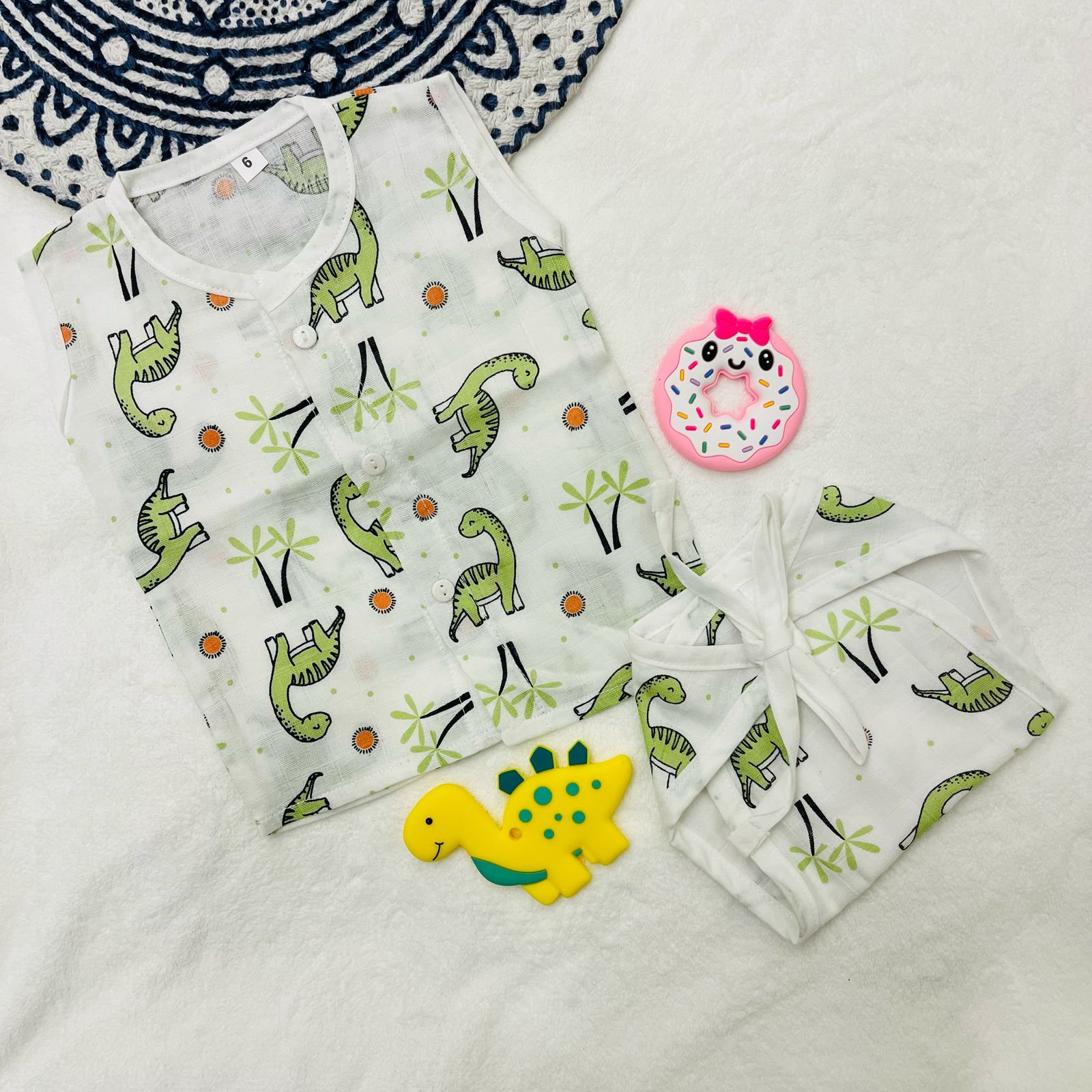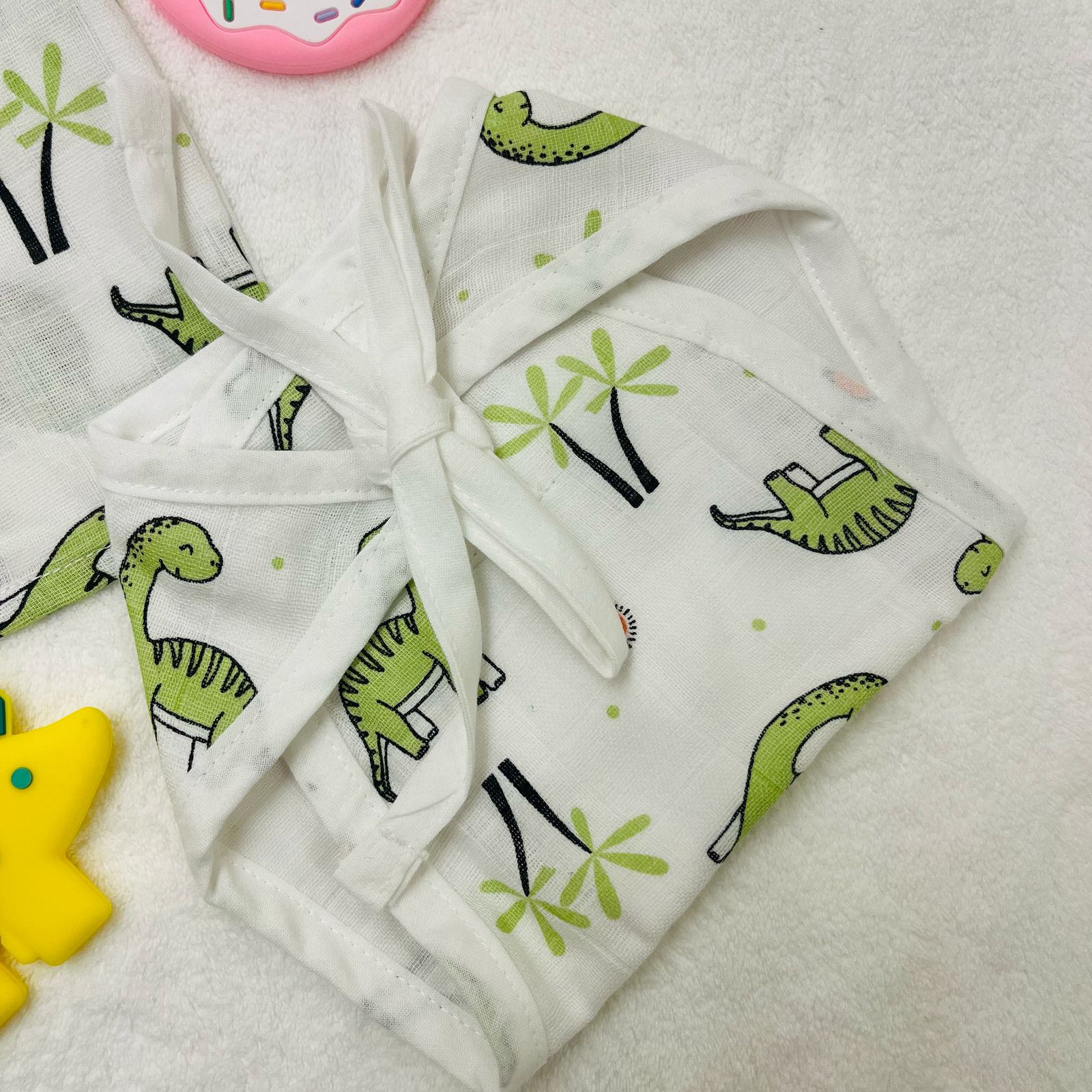 Pure Muslin Button Jabla & Padded Langot | 0-6 Months | Matching Set | Knot Padded Langot & Button Jabla | Little Dino | Unisex