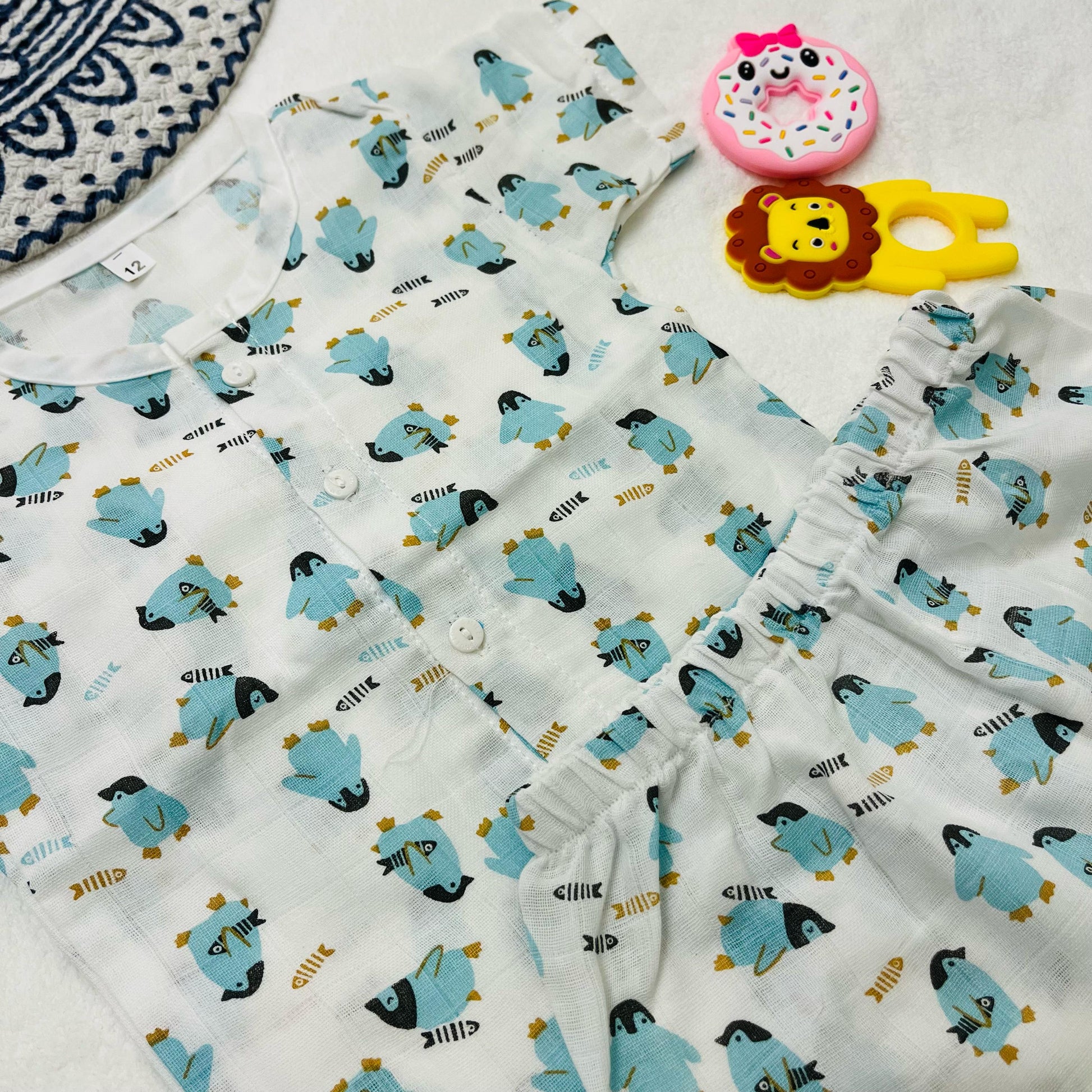 Pure Muslin Co-Ord Set | 6 Months - 24 Months | Pure Muslin | Penguin & Fish| Unisex