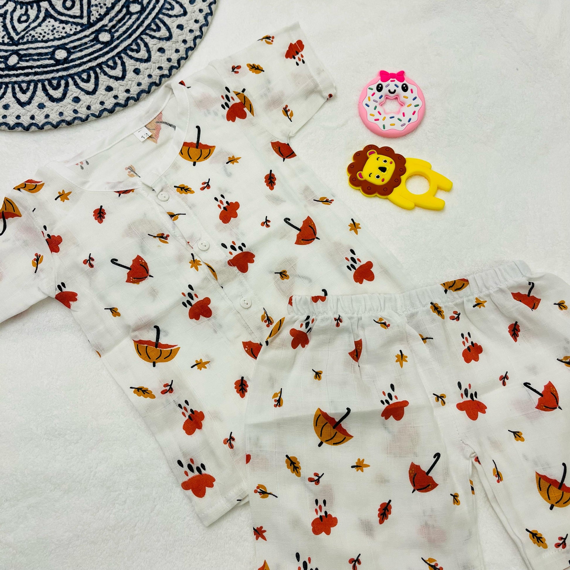 Pure Muslin Co-Ord Set | 6 Months - 24 Months | Pure Muslin | Umbrella & Rain | Unisex
