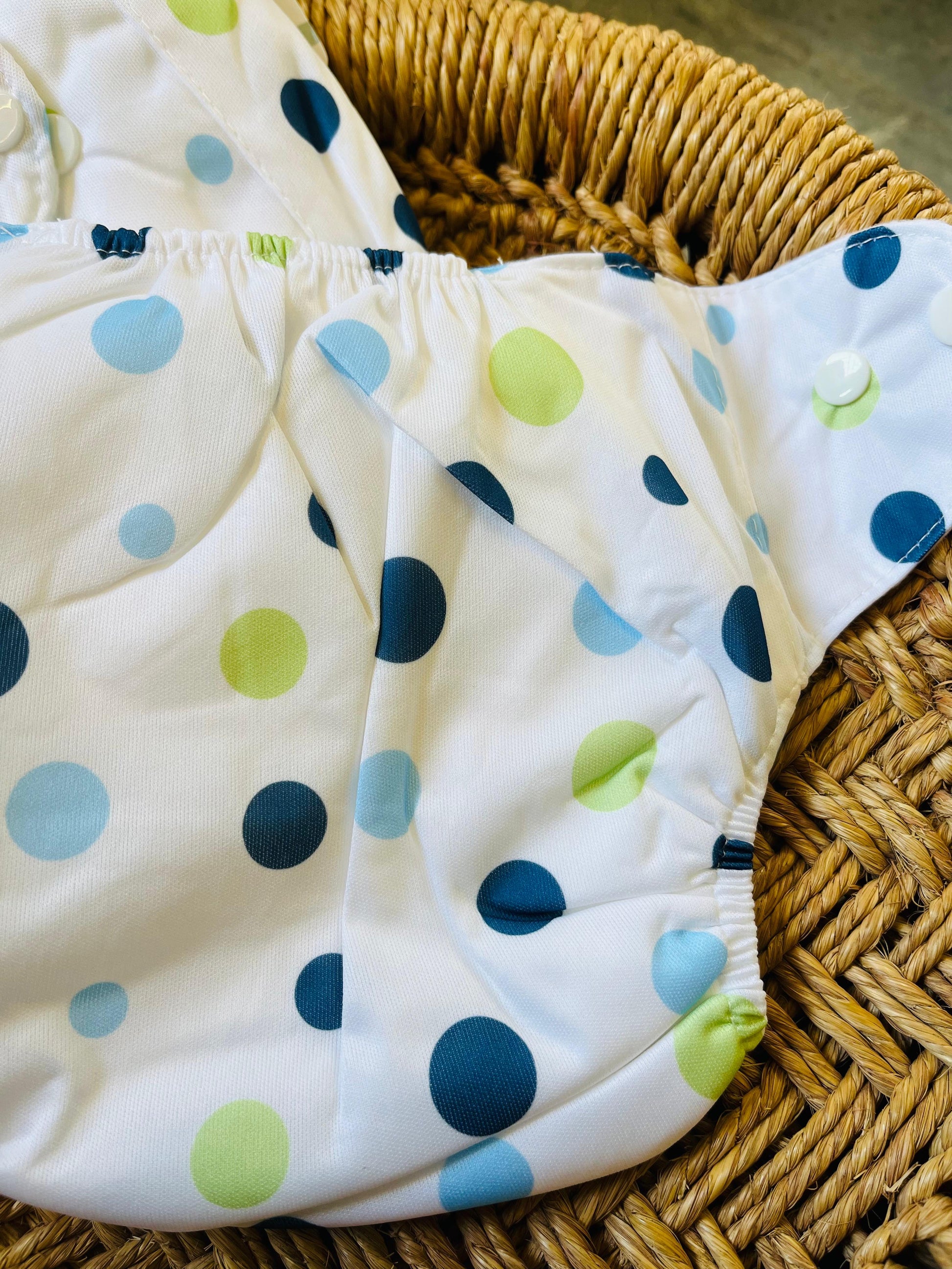 Reusable Diaper - White Polka Dots | Comes with 1 Reusable Pad | (0 Months to 36 Months)
