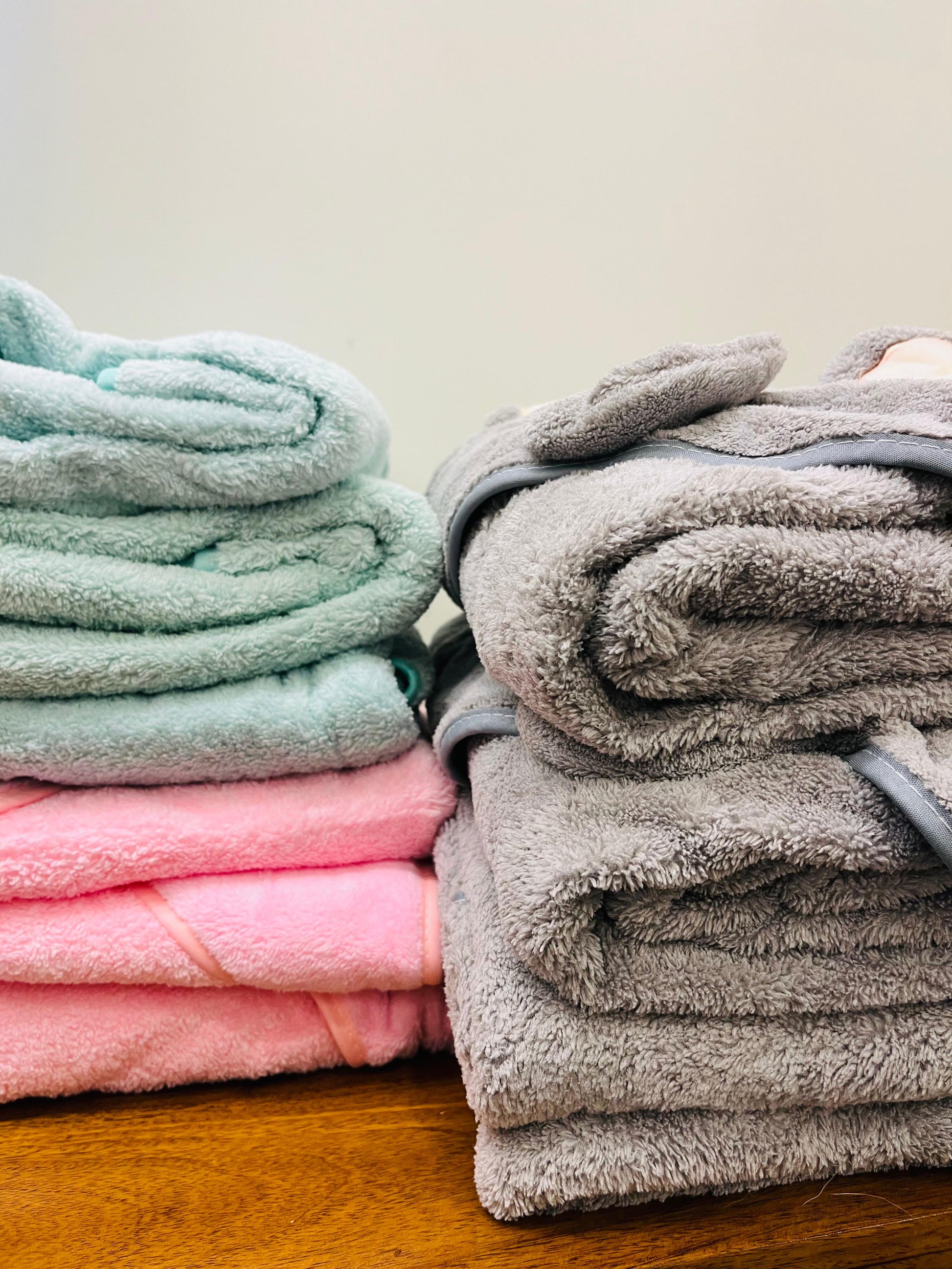 Introducing our Soft Microfibre Baby Cap Towels - Perfect for keeping your little one cozy and dry after bath time or for casual wrappping!