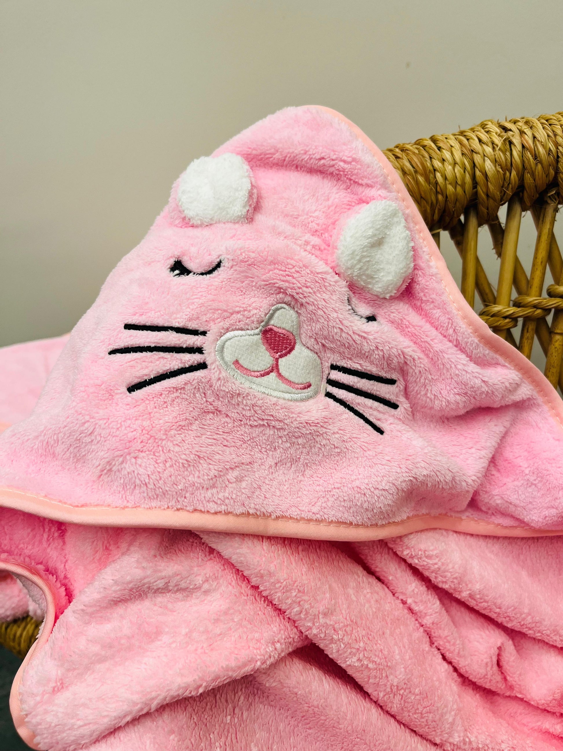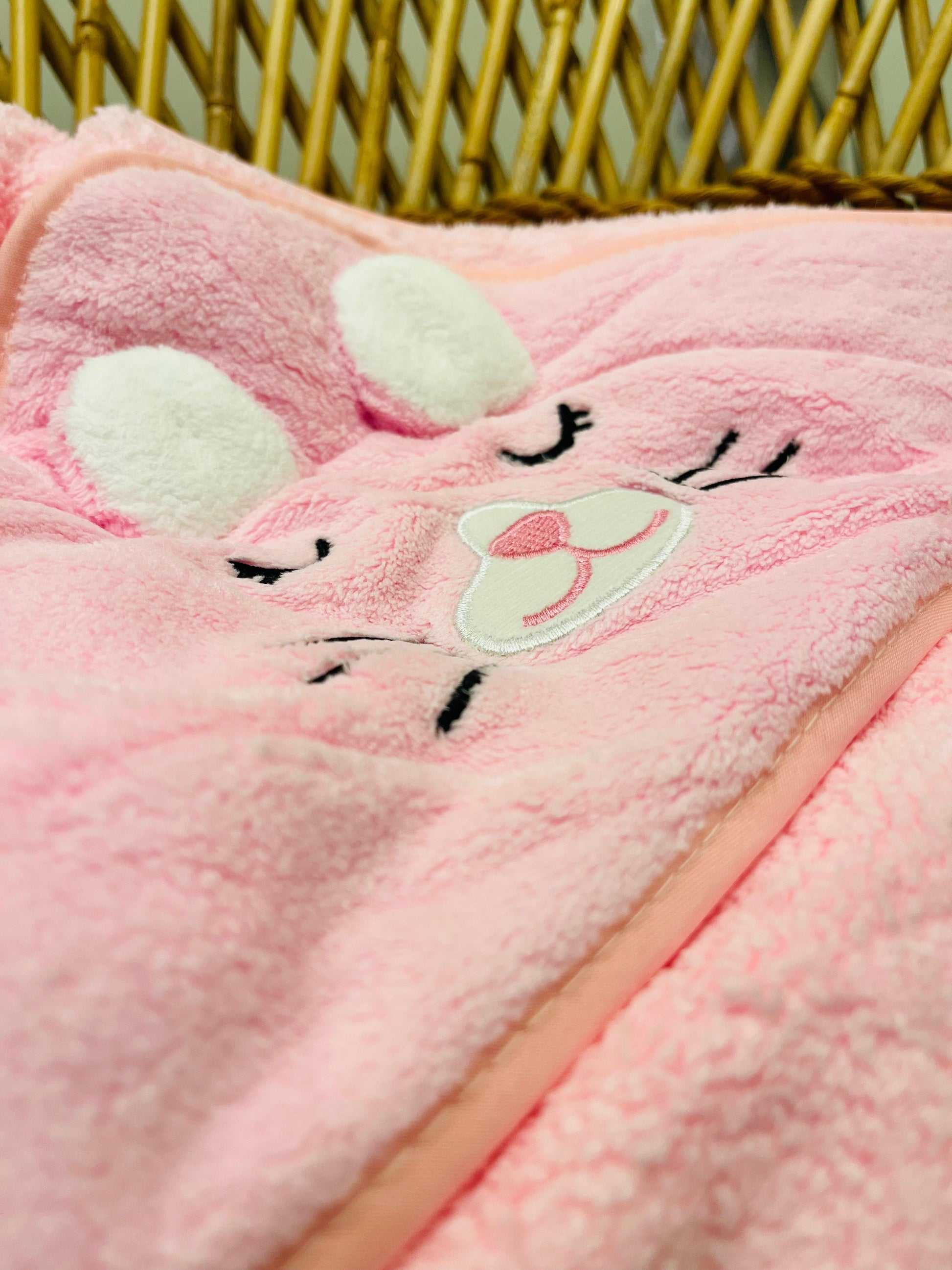 Soft Pink | Microfibre Cotton Cap Towel | Cozy | Skin-Friendly | (0 Months to 24 Months)